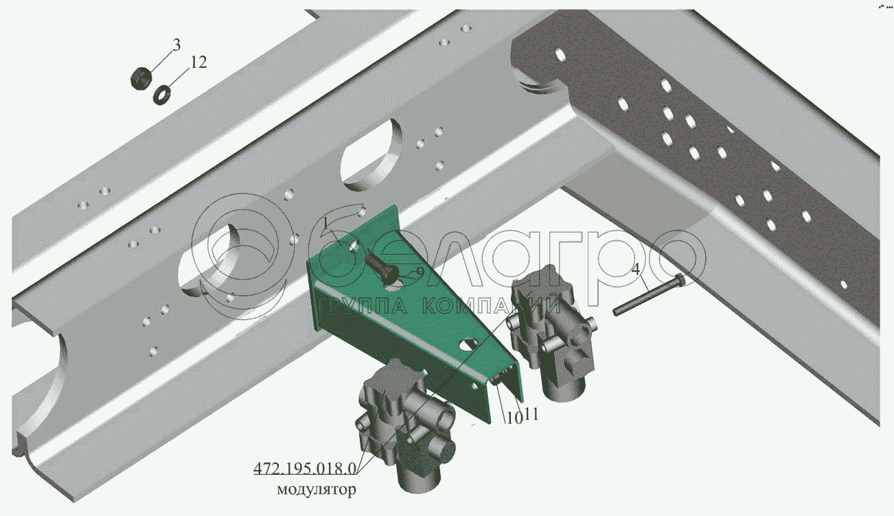 Каталог запасных частей к технике: МАЗ-5440B5. Крепление модуляторов 5440А8-3538004