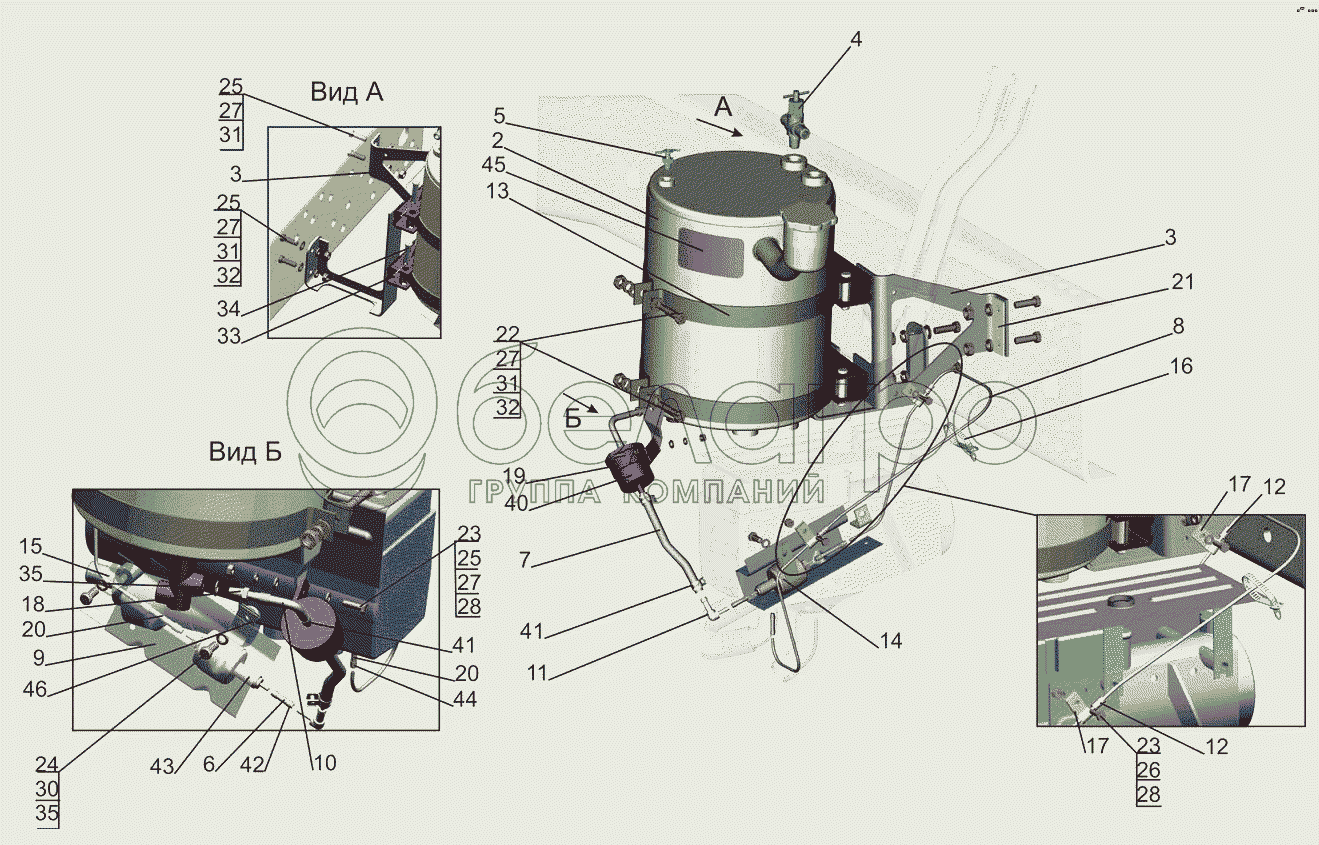 Каталог запасных частей к технике: МАЗ-5440B5. Крепление топливопроводов подогревателя 6501B5-1015004