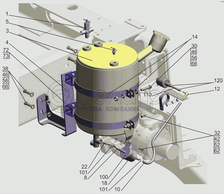 Каталог запасных частей к технике: МАЗ-5440B5. Крепление топливопроводов подогревателя 6501B5-1015004-010