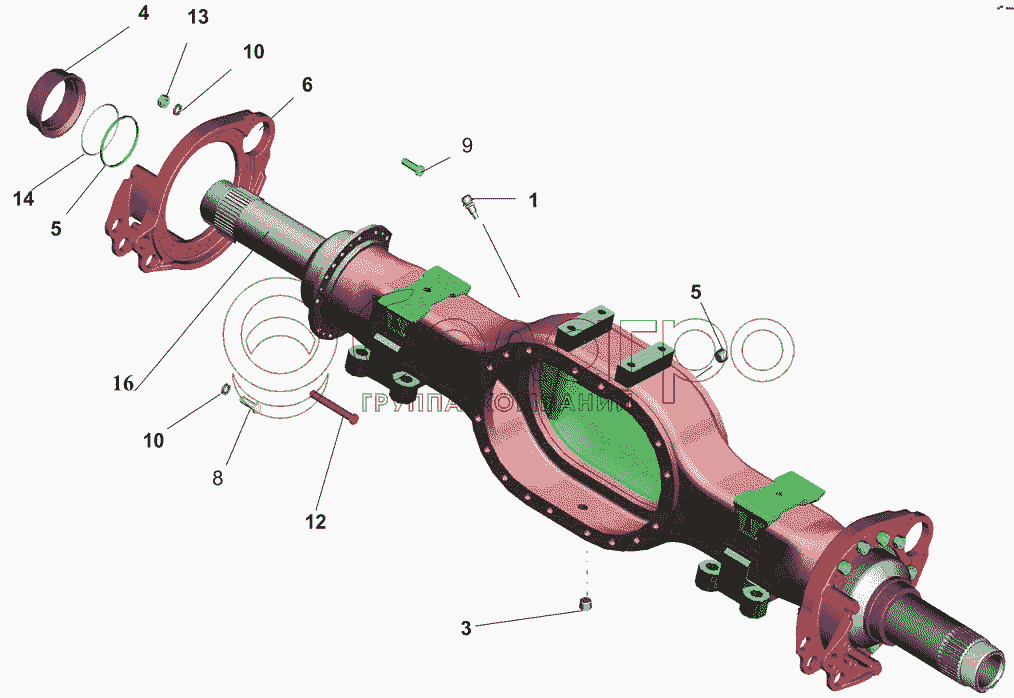 Каталог запасных частей к технике: МАЗ-5440B5. Мост задний. Картер моста 5440-2401010-030