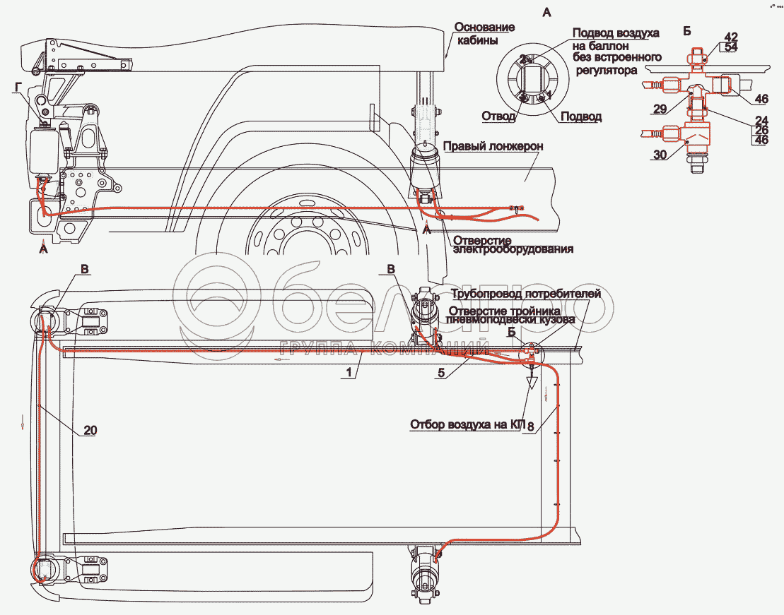Каталог запасных частей к технике: МАЗ-5440B5. Пневмопитание подвески кабины 6430-5001930