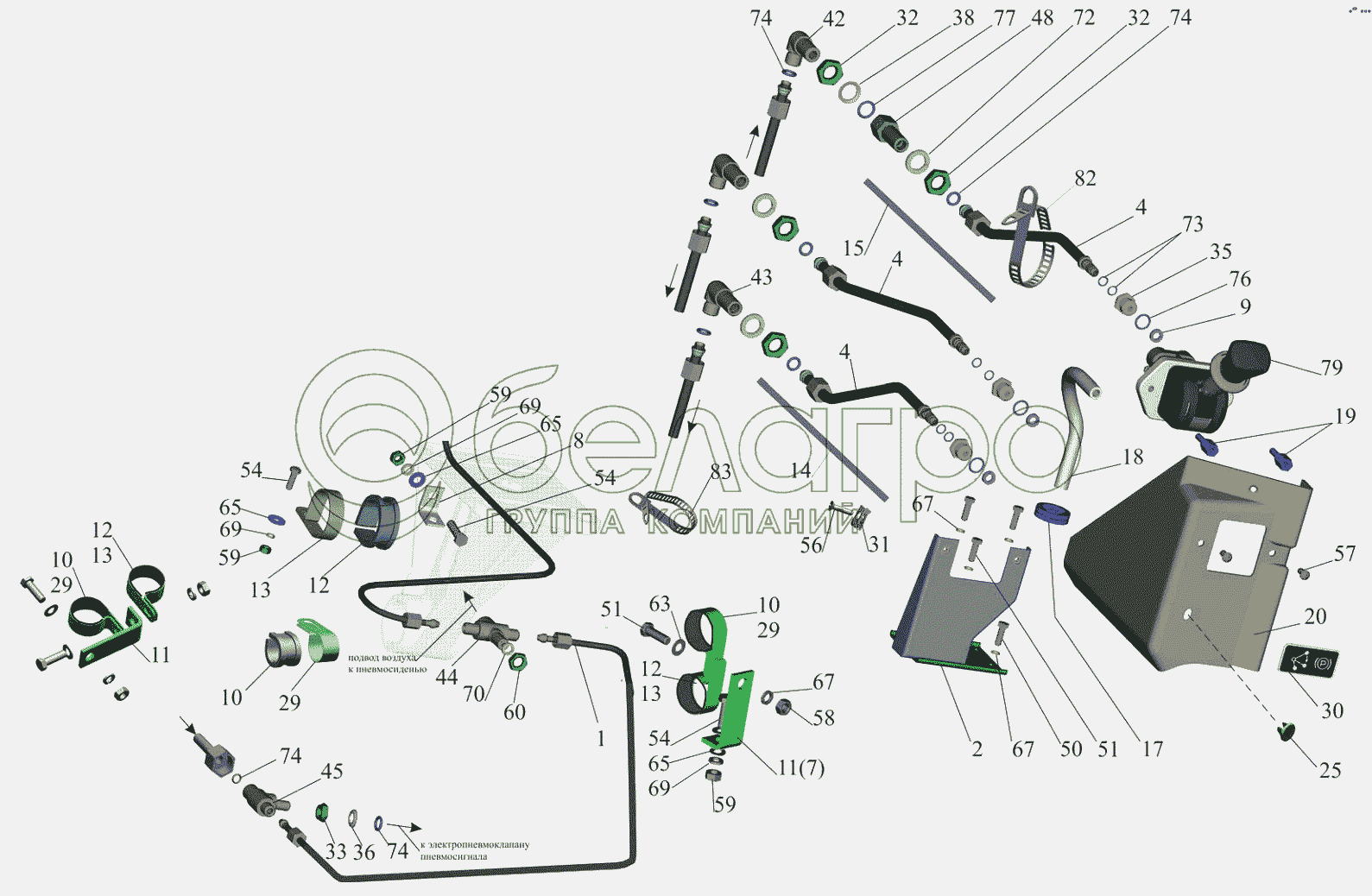 Каталог запасных частей к технике: МАЗ-5440B5. Привод стояночного тормоза