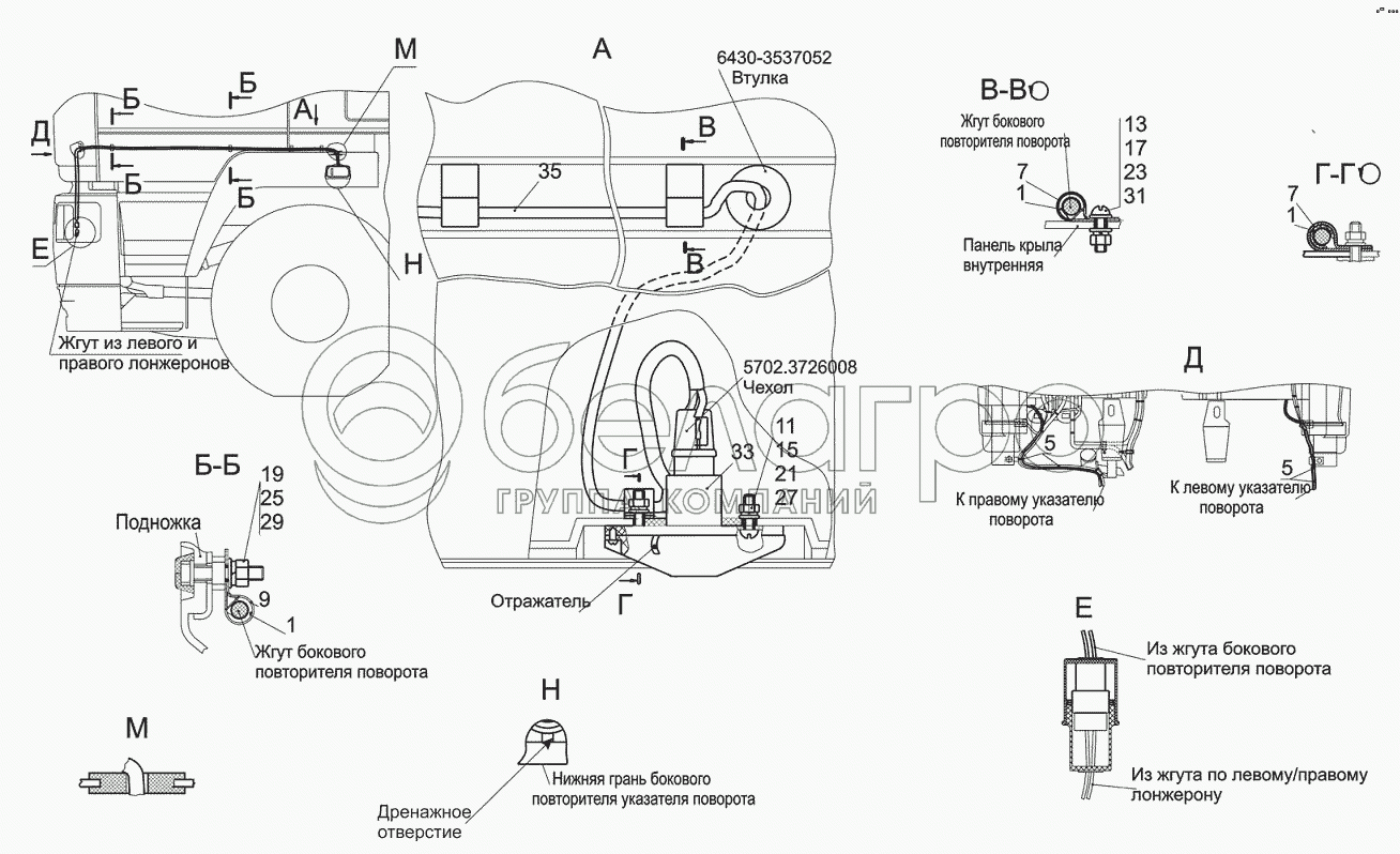 Каталог запасных частей к технике: МАЗ-5440B5. Установка боковых указателей поворота 6430-3700150