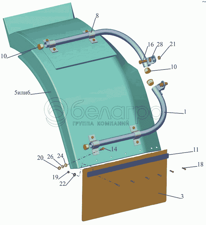 Каталог запасных частей к технике: МАЗ-5440B5. Установка брызговиков передних колес 6430-8400030-030