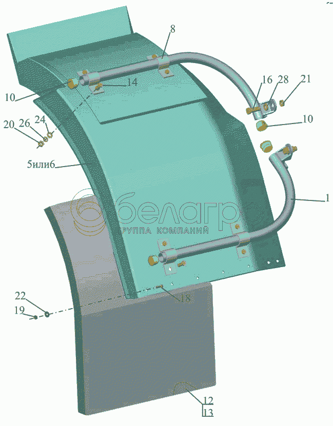 Каталог запасных частей к технике: МАЗ-5440B5. Установка брызговиков передних колес 6430-8400030-031