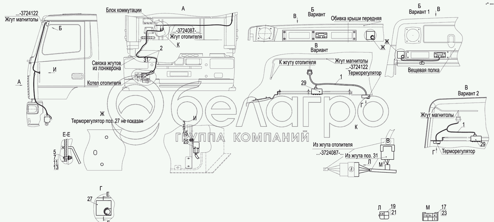Каталог запасных частей к технике: МАЗ-5440B5. Установка электрооборудования подогревателя 6501-3700085