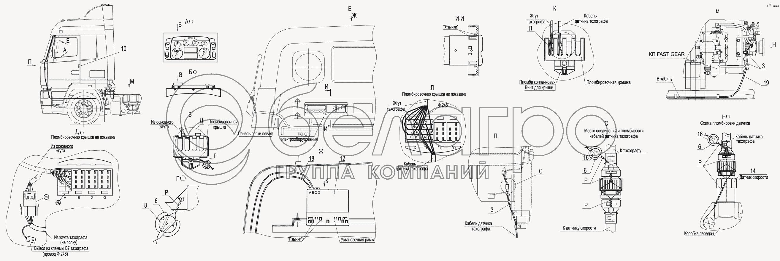 Каталог запасных частей к технике: МАЗ-5440B5. Установка и пломбировка тахографа 6516А9-3800005-020