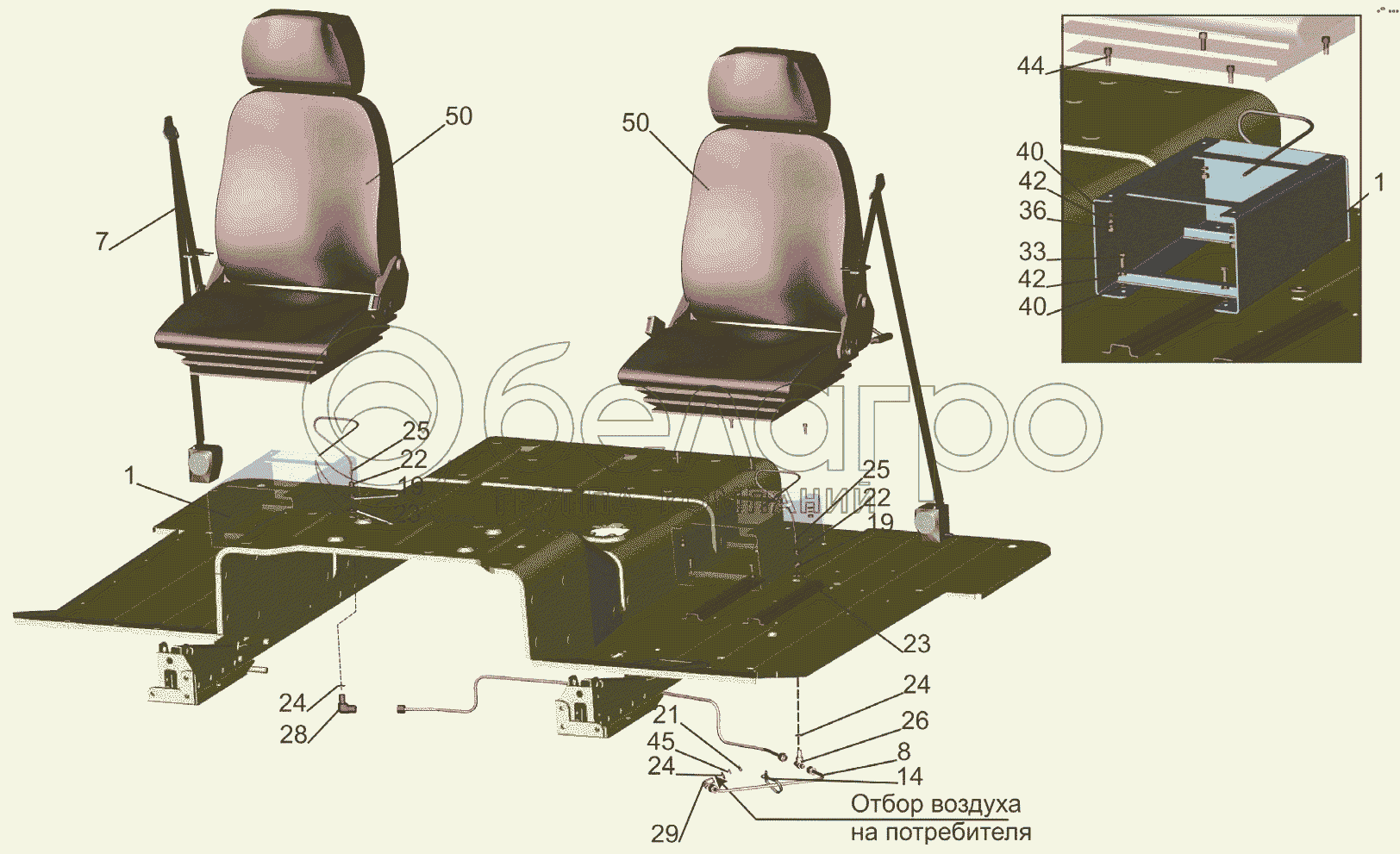 Каталог запасных частей к технике: МАЗ-5440B5. Установка и пневмопитание сидений 544069-6800006