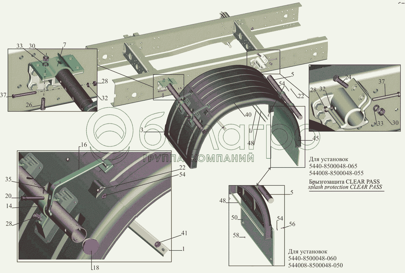 Установка крыльев 544004-8500048-050 (-055), 544004-8500048-060 (-065)