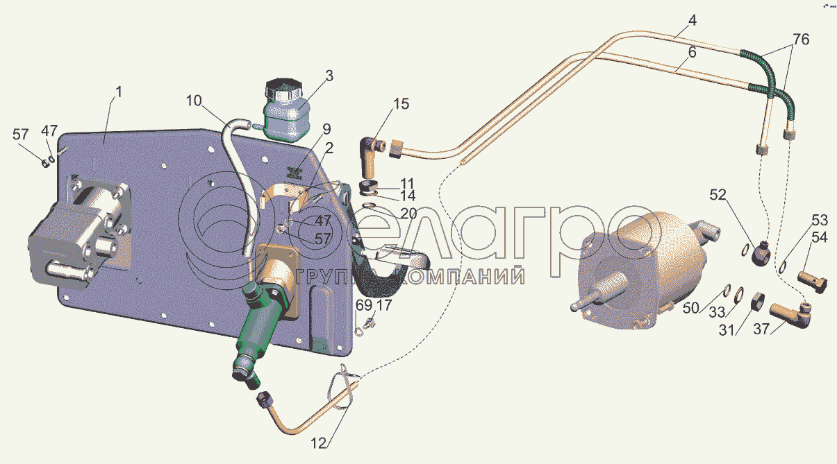 Каталог запасных частей к технике: МАЗ-5440B5. Установка механизма управления сцеплением 64302-1600005-001