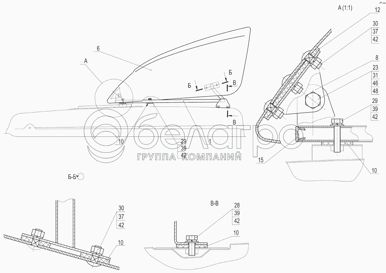 Каталог запасных частей к технике: МАЗ-5440B5. Установка обтекателей 5440-8000014-000