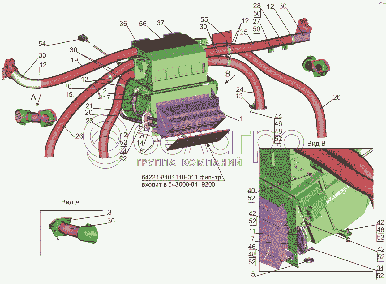 Каталог запасных частей к технике: МАЗ-5440B5. Установка отопителя 631019-8100001