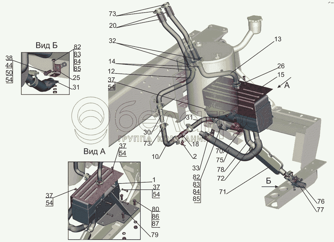 Каталог запасных частей к технике: МАЗ-5440B5. Установка подогревателя 555035-1015001