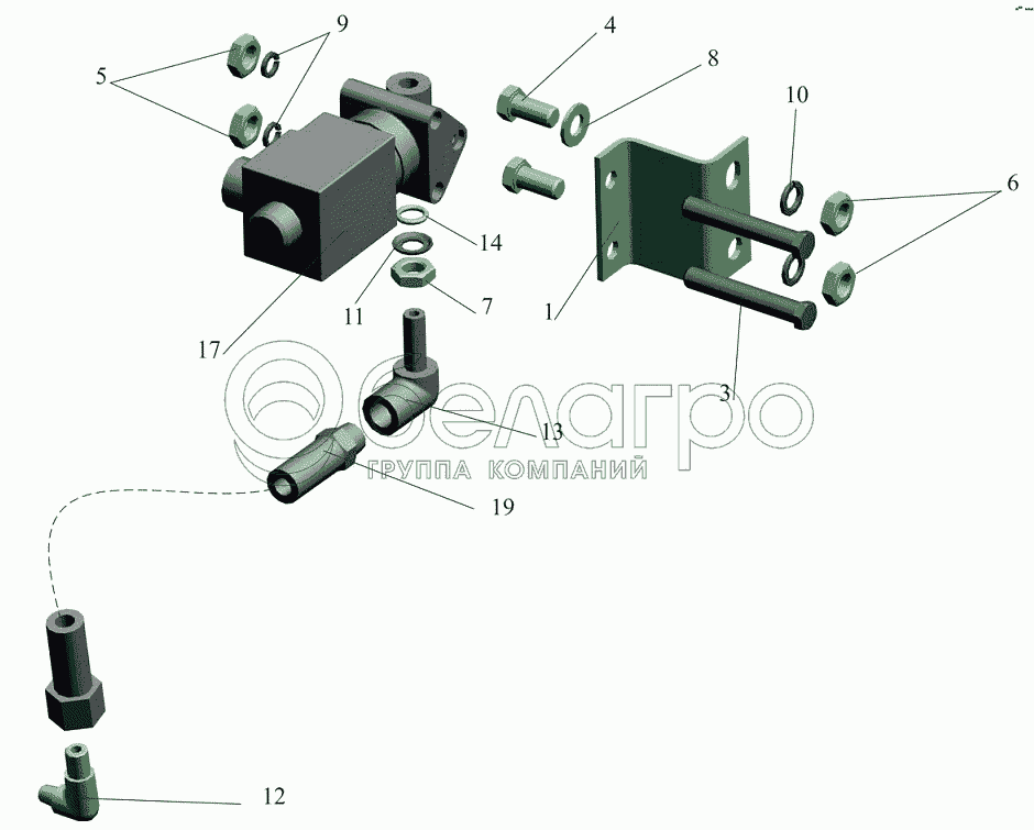 Каталог запасных частей к технике: МАЗ-5440B5. Установка привода управления блокировки 5440-2400024