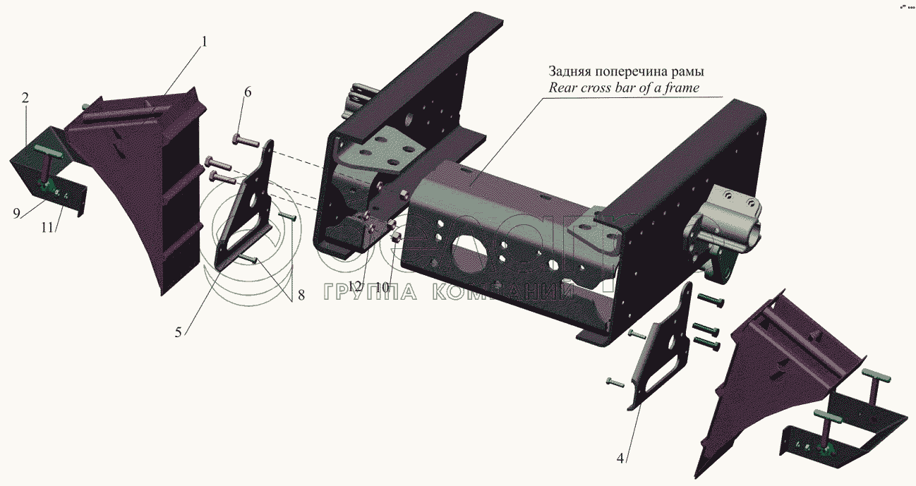 Каталог запасных частей к технике: МАЗ-5440B5. Установка противооткатных упоров 544018-3900037