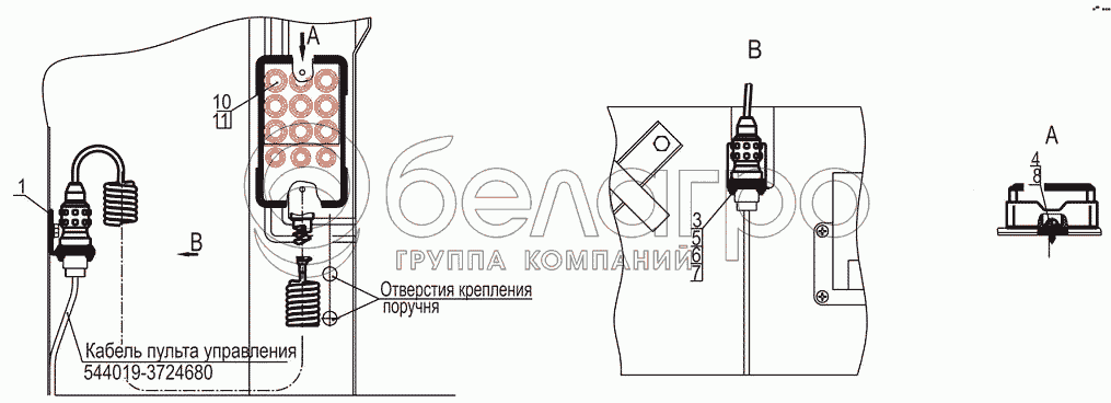 Каталог запасных частей к технике: МАЗ-5440B5. Установка пульта управления пневмоподвеской 544019-3700153