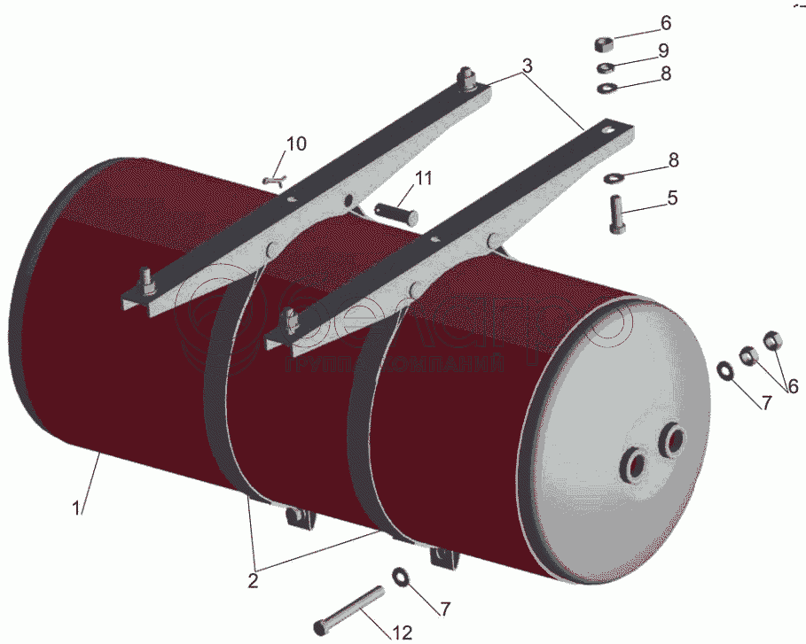 Каталог запасных частей к технике: МАЗ-5440B5. Установка ресивера 544020-3513004