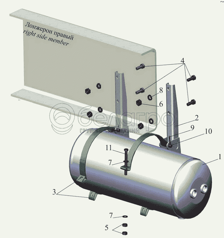 Каталог запасных частей к технике: МАЗ-5440B5. Установка ресивера 643026-3513006