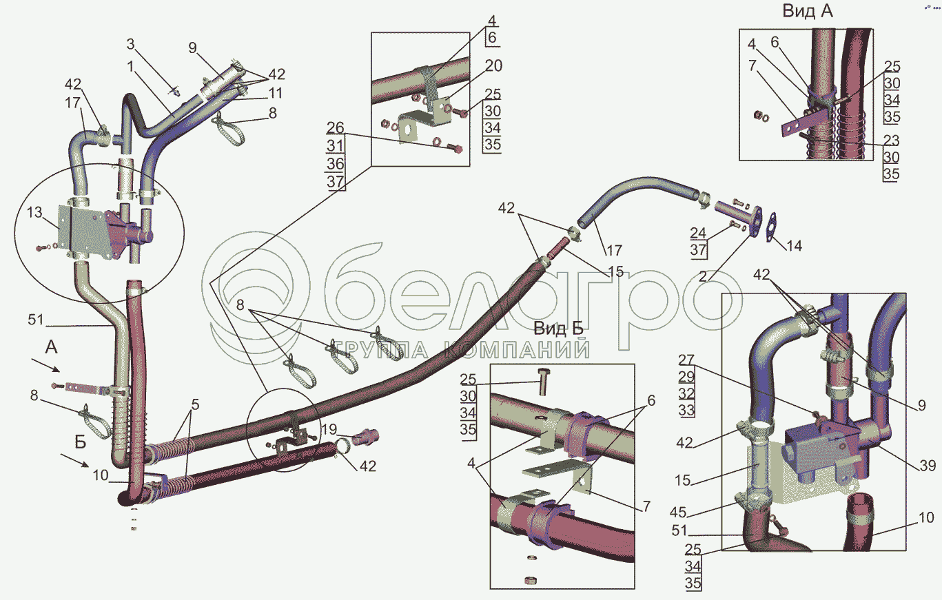 Каталог запасных частей к технике: МАЗ-5440B5. Установка шлангов отопителя 6501В3-8100006-020