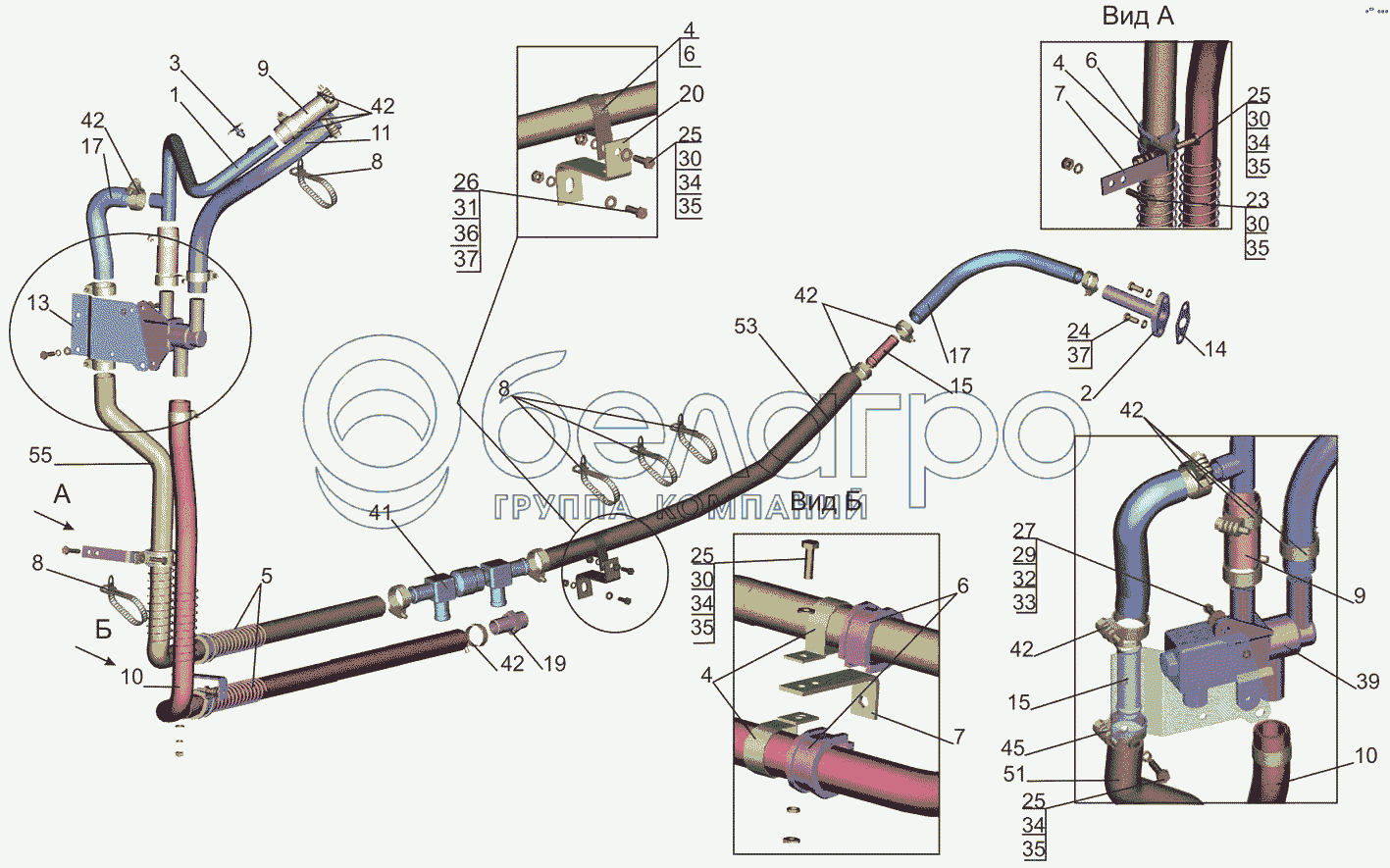 Каталог запасных частей к технике: МАЗ-5440B5. Установка шлангов отопителя 6501В3-8100006-030