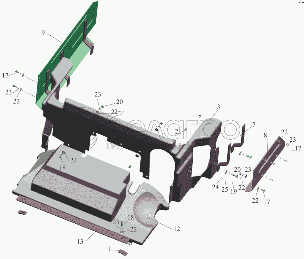 Каталог запасных частей к технике: МАЗ-5440B5. Установка шумоизоляционных экранов 5440A9-1061003-005