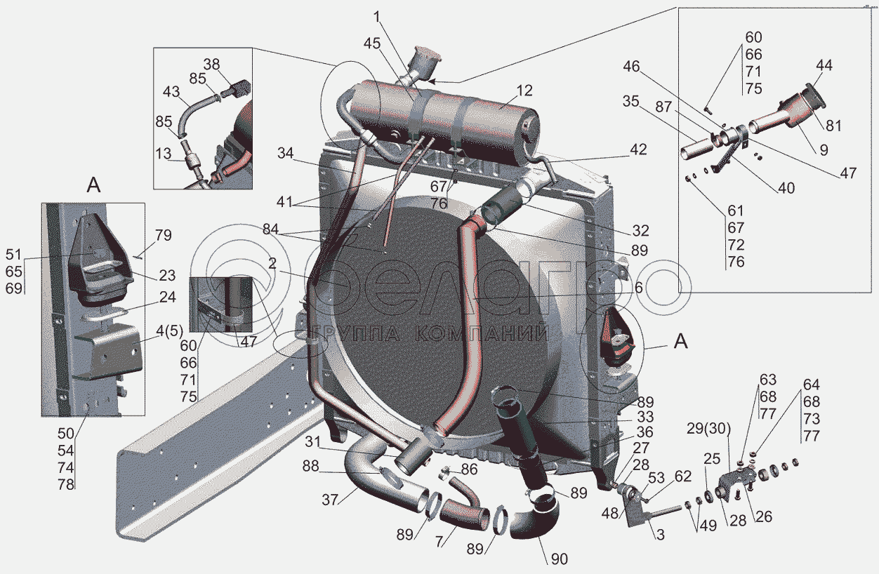 Каталог запасных частей к технике: МАЗ-5440B5. Установка системы охлаждения 6312B5-1300005-010