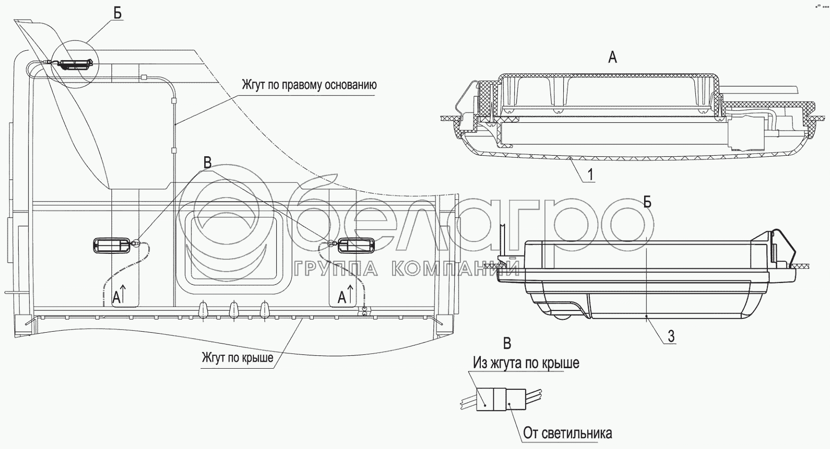 Каталог запасных частей к технике: МАЗ-5440B5. Установка светильников в кабине 544008-3700136