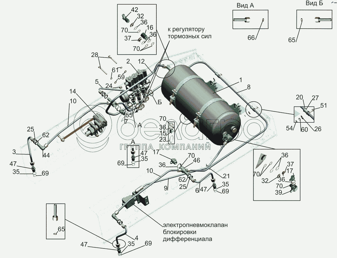 Каталог запасных частей к технике: МАЗ-5440B5. Установка трубопроводов ECAS 5440А9-2900018-050