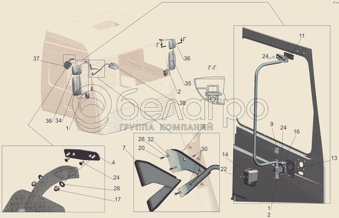 Каталог запасных частей к технике: МАЗ-5440B5. Установка зеркал 6430-8200005-010
