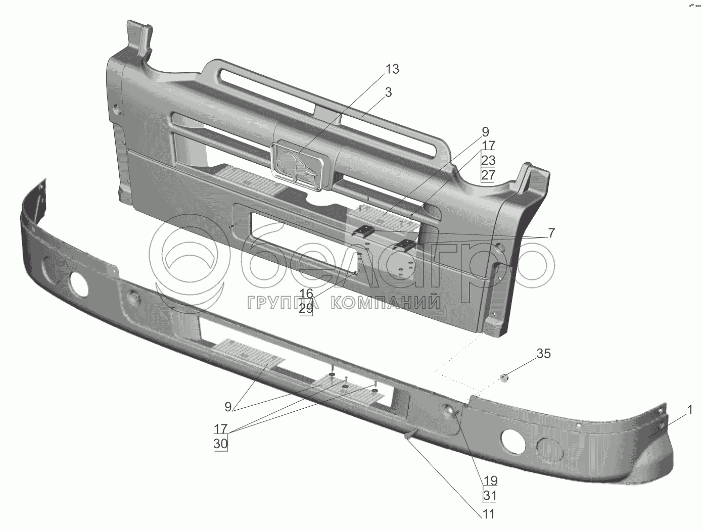 Каталог запасных частей к технике: МАЗ-5440B9, 6430B9. Бампер передний 643019-2803010