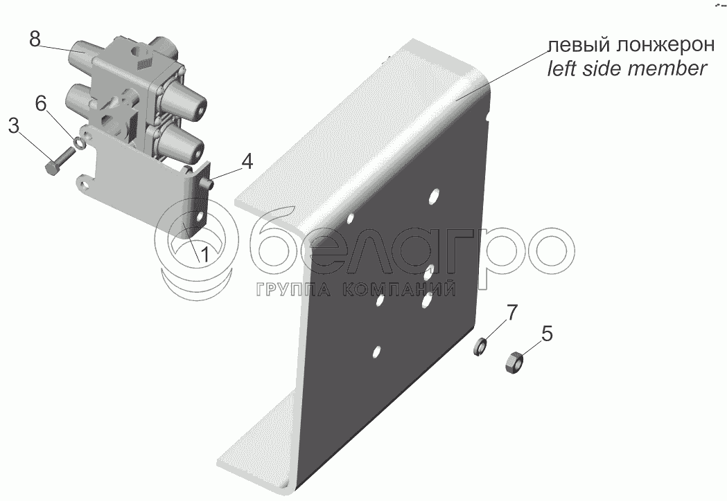 Каталог запасных частей к технике: МАЗ-5440B9, 6430B9. Крепление четырехконтурного клапана 650107-3515002