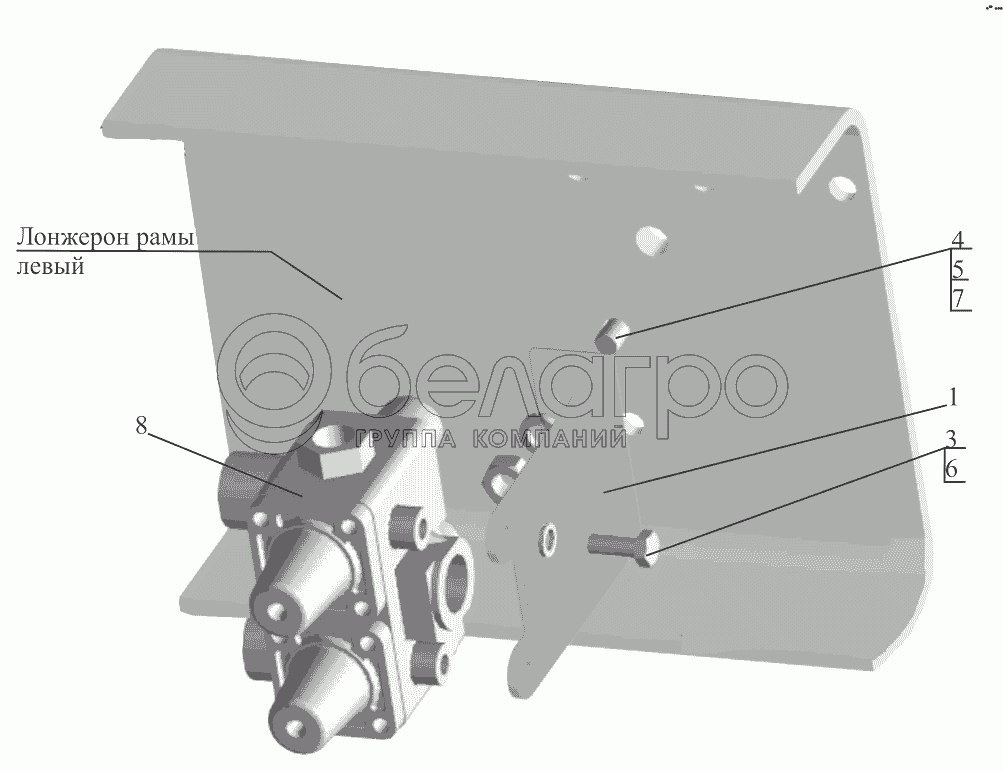 Каталог запасных частей к технике: МАЗ-5440B9, 6430B9. Крепление клапана четырехконтурного 438041-3515002