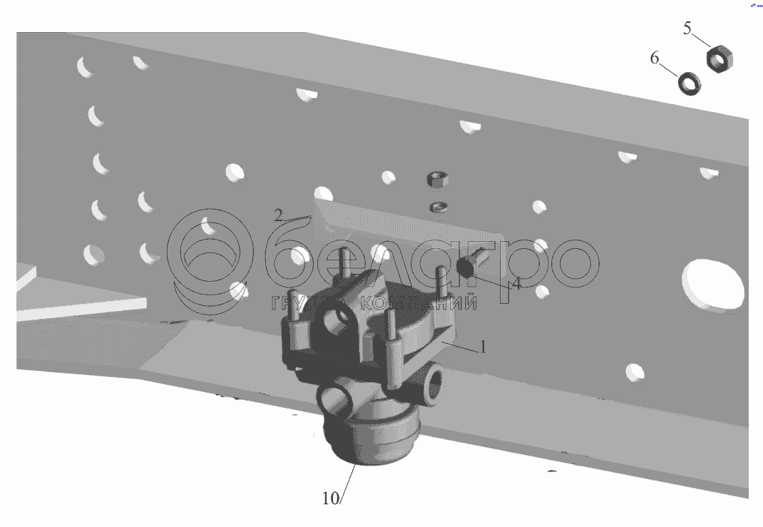 Каталог запасных частей к технике: МАЗ-5440B9, 6430B9. Крепление клапана ускорительного 544008-3518004