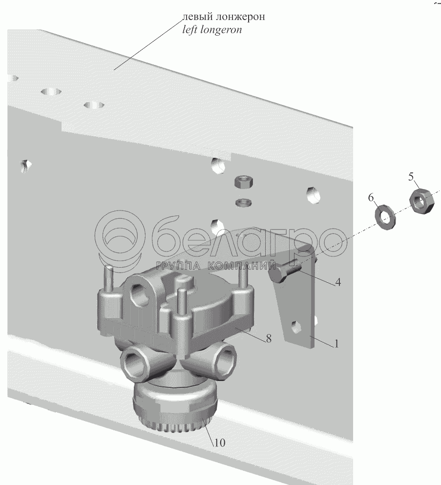 Каталог запасных частей к технике: МАЗ-5440B9, 6430B9. Крепление клапана ускорительного 6501А9-3518004