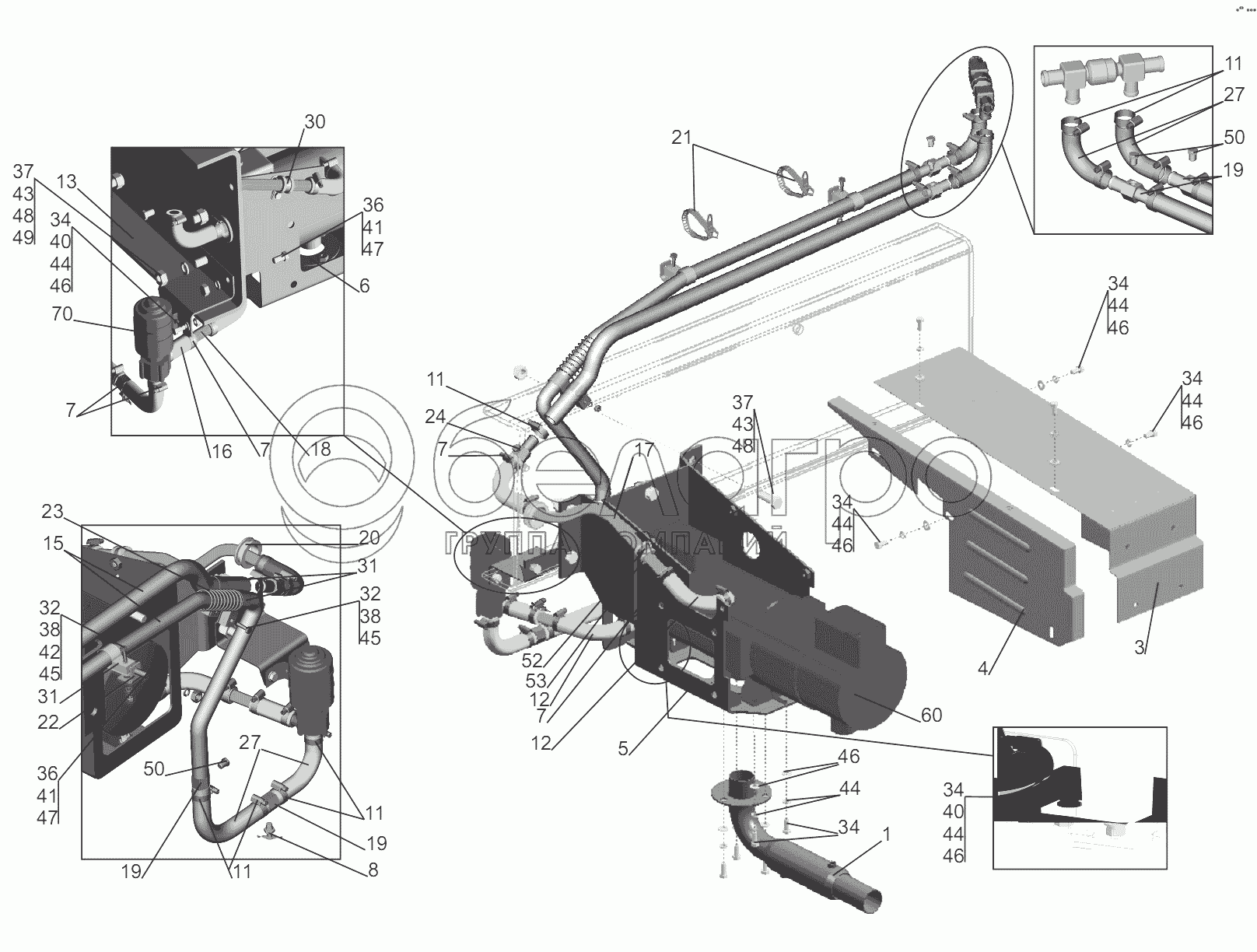 Каталог запасных частей к технике: МАЗ-5440B9, 6430B9. Крепление подогревателя 5440A9-1015001-010