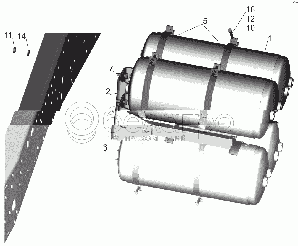 Каталог запасных частей к технике: МАЗ-5440B9, 6430B9. Крепление ресиверов 643020-3513005-010
