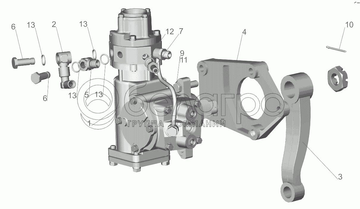Каталог запасных частей к технике: МАЗ-5440B9, 6430B9. Механизм рулевой с кронштейном 6418-3400006