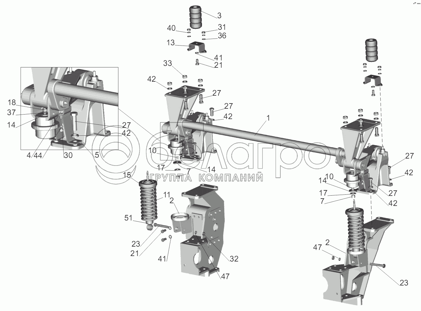 Каталог запасных частей к технике: МАЗ-5440B9, 6430B9. Переднее подрессоривание 6430-5001700-10