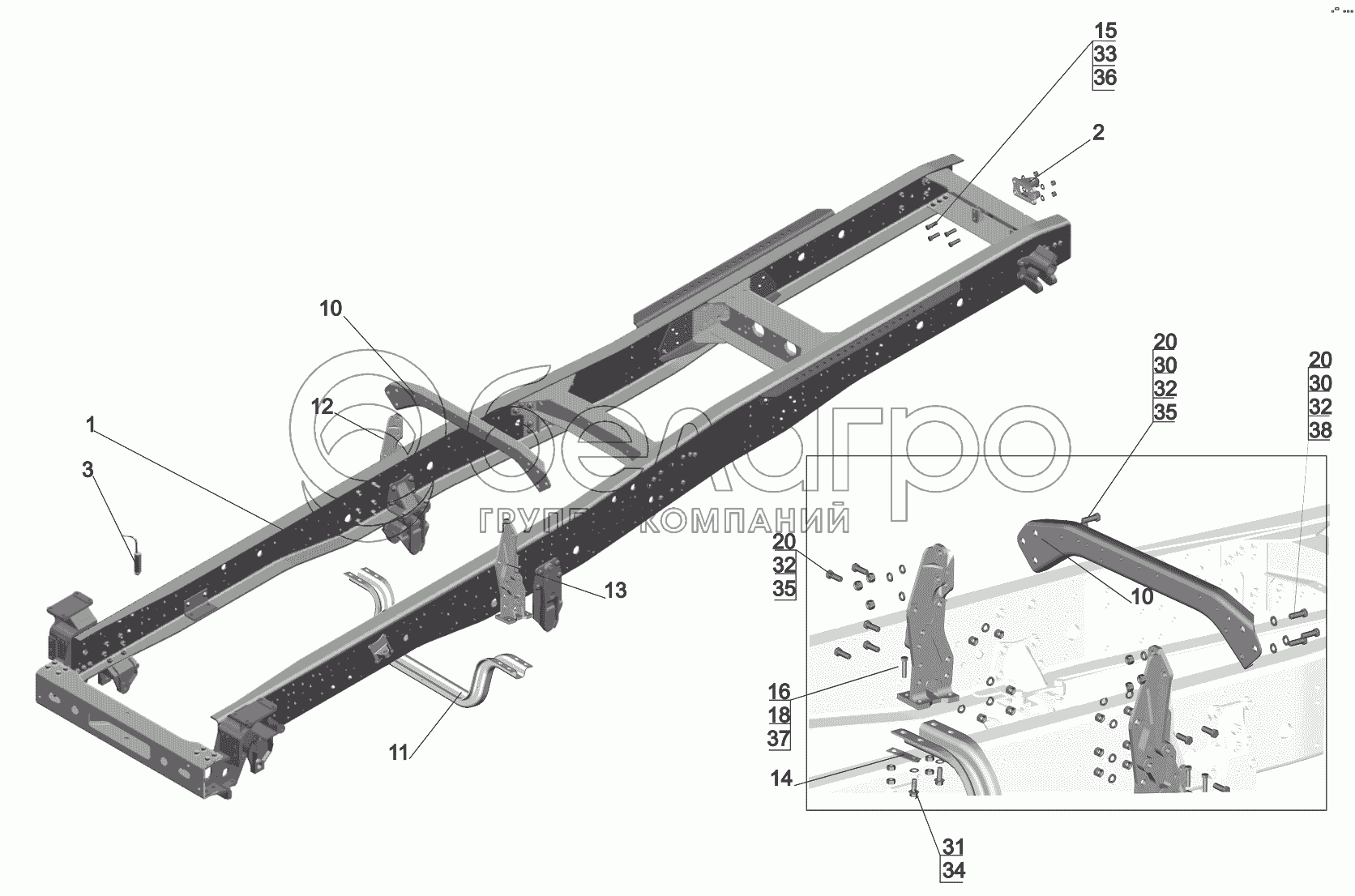 Каталог запасных частей к технике: МАЗ-5440B9, 6430B9. Рама 5440В9-2800010-030