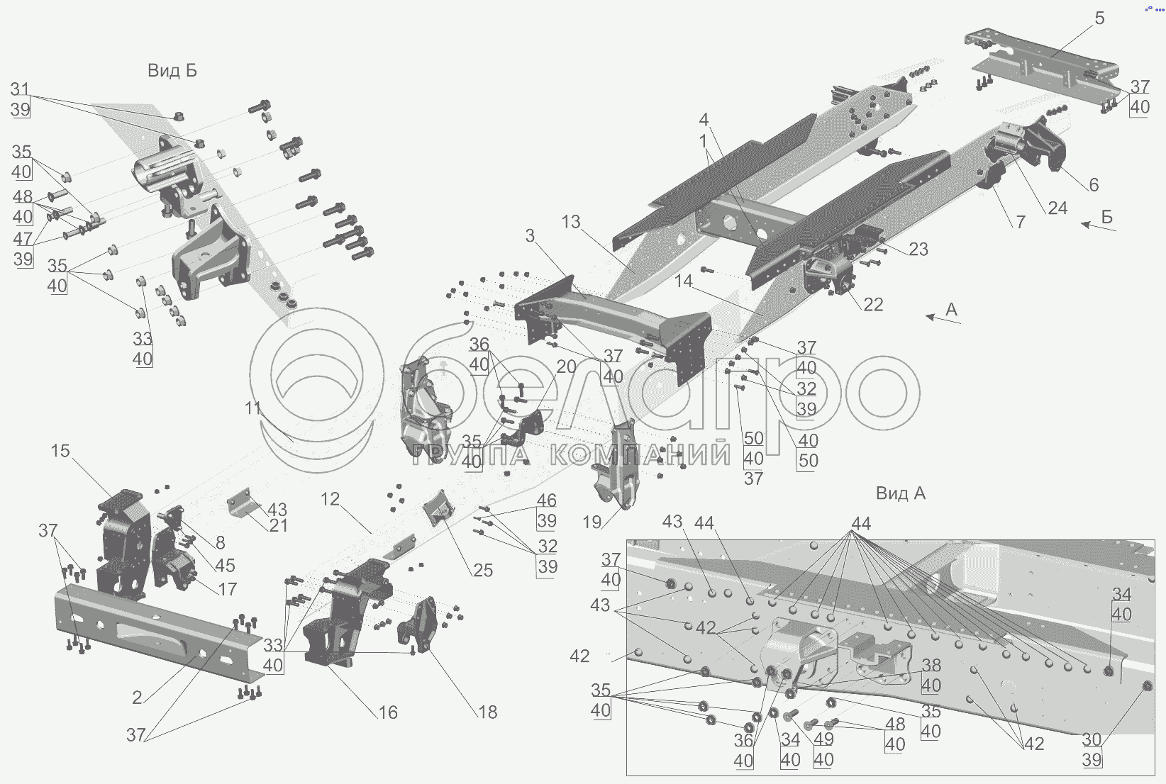 Каталог запасных частей к технике: МАЗ-5440B9, 6430B9. Рама 5440В9-2801002-010