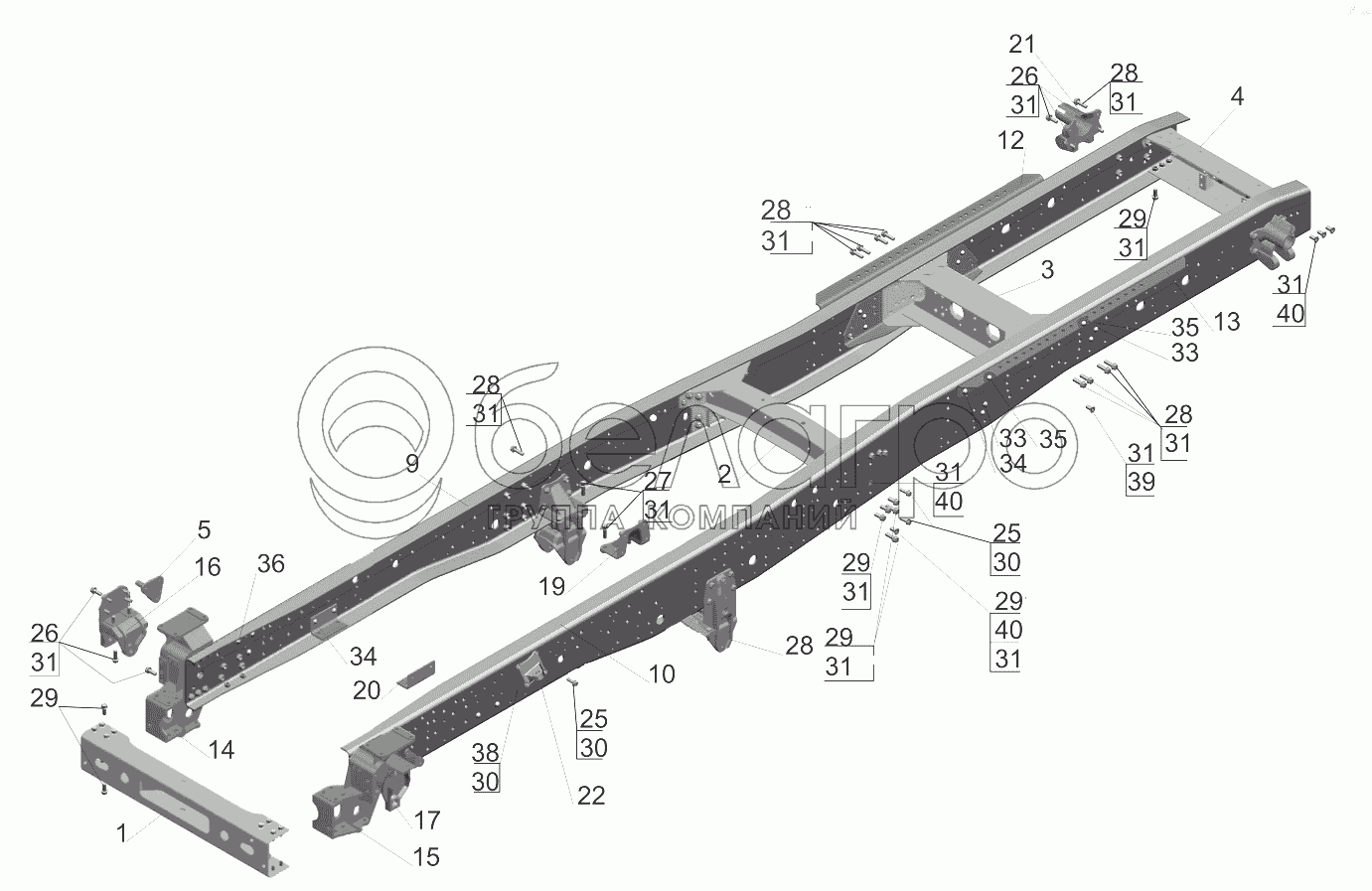 Каталог запасных частей к технике: МАЗ-5440B9, 6430B9. Рама 5440В9-2801002-030