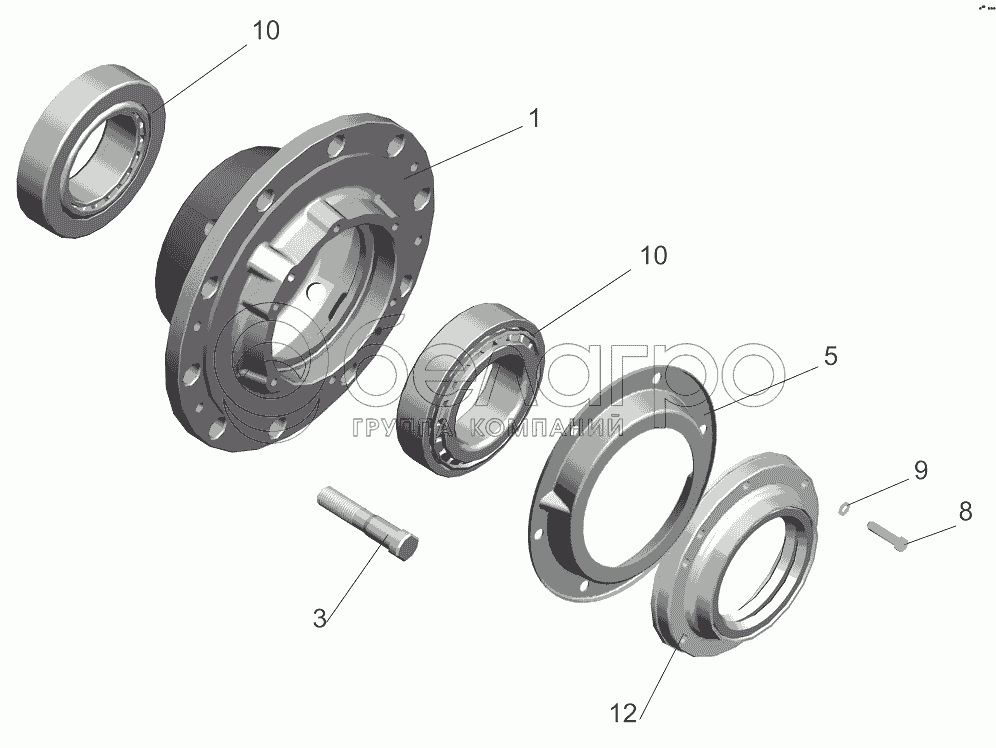 Каталог запасных частей к технике: МАЗ-5440B9, 6430B9. Ступица с крышкой 544019-3104006-010