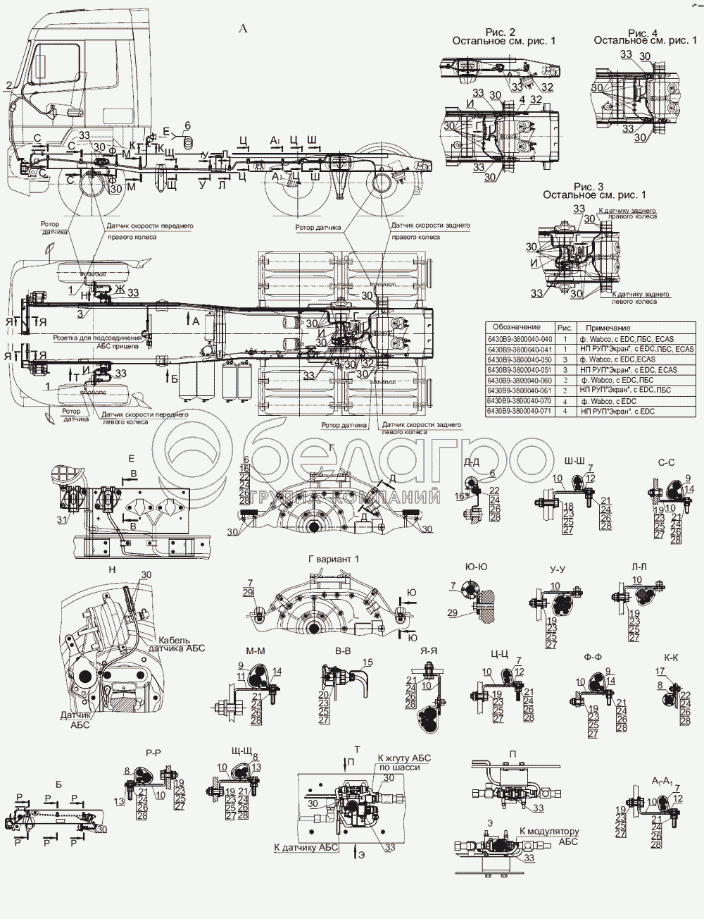 Каталог запасных частей к технике: МАЗ-5440B9, 6430B9. Установка электрооборудования АБС тормозов