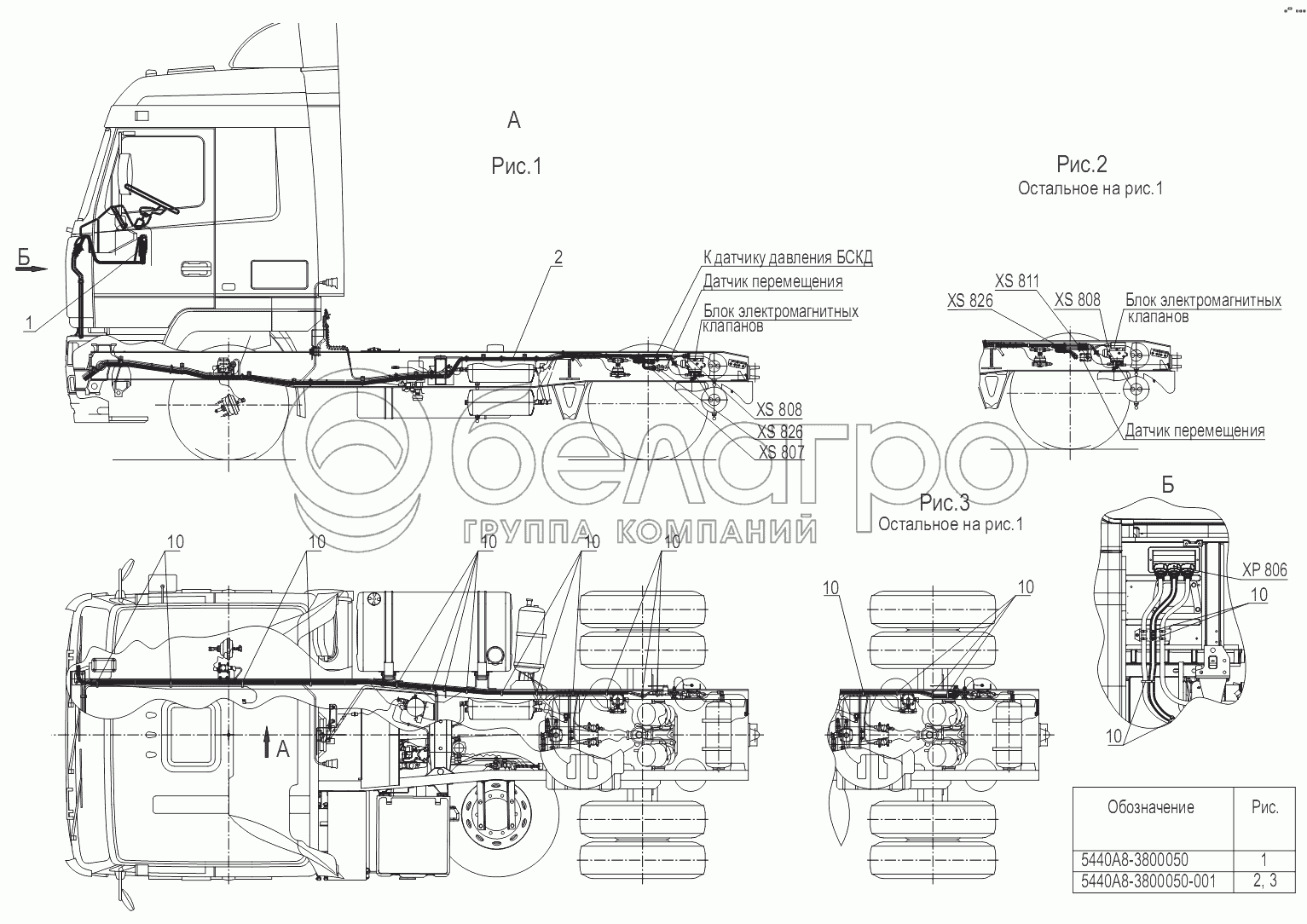 Каталог запасных частей к технике: МАЗ-5440B9, 6430B9. Установка электрооборудования пневмоподвески