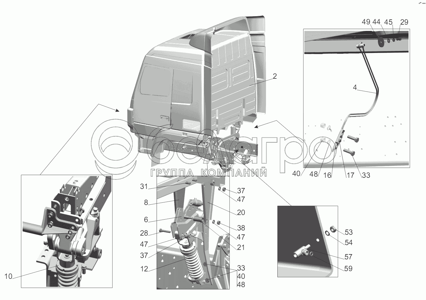 Каталог запасных частей к технике: МАЗ-5440B9, 6430B9. Установка кабины