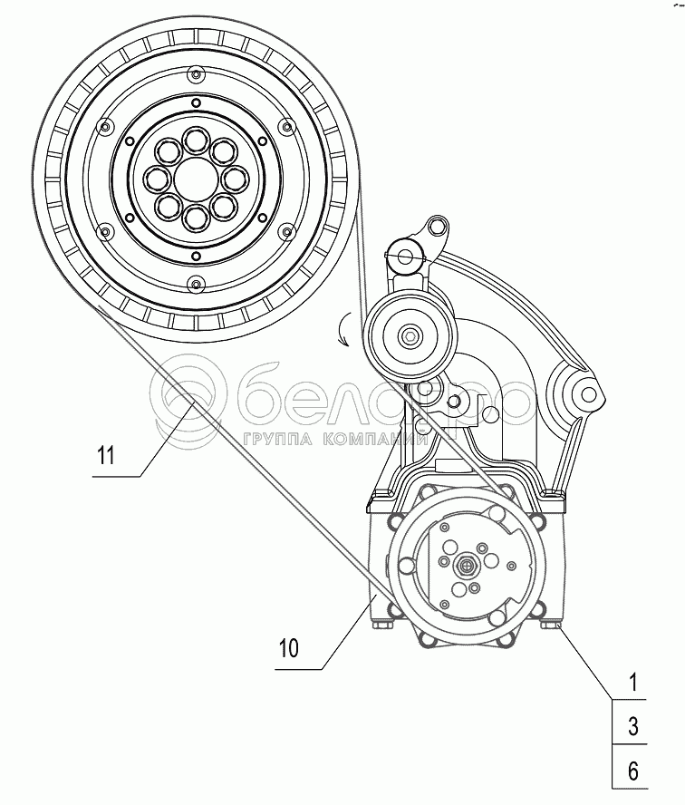 Каталог запасных частей к технике: МАЗ-5440B9, 6430B9. Установка компрессора 5440А9-8100010