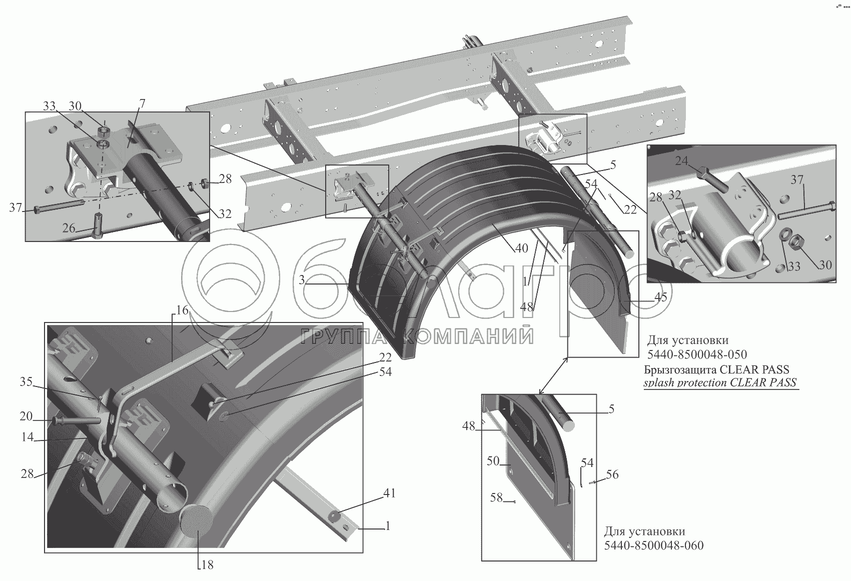 Каталог запасных частей к технике: МАЗ-5440B9, 6430B9. Установка крыльев