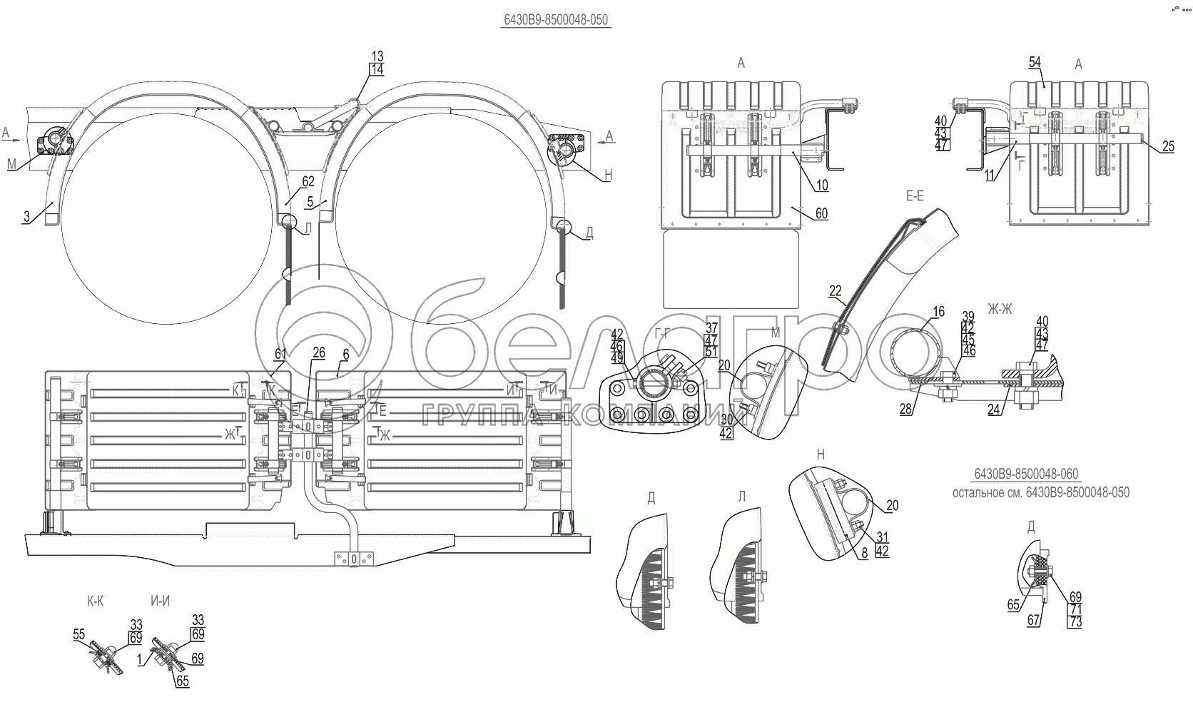Каталог запасных частей к технике: МАЗ-5440B9, 6430B9. Установка крыльев