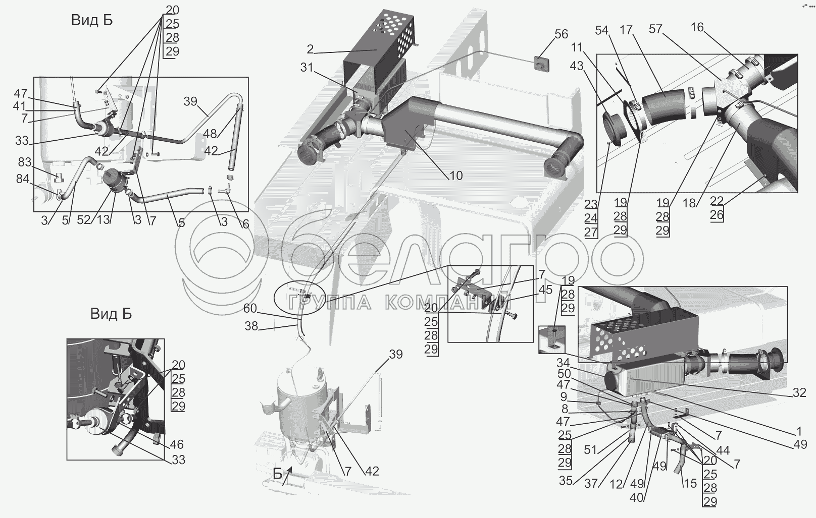 Каталог запасных частей к технике: МАЗ-5440B9, 6430B9. Установка независимого воздушного отопителя 6430-8100002