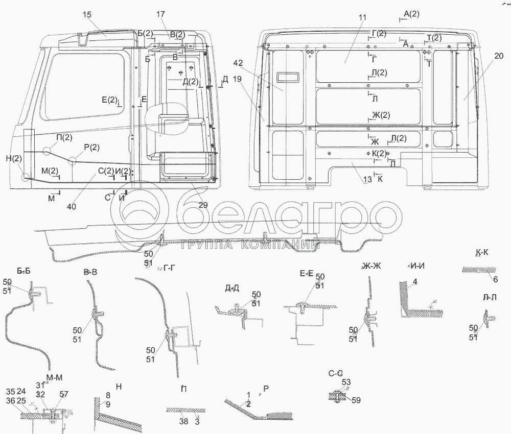 Каталог запасных частей к технике: МАЗ-5440B9, 6430B9. Установка обивок и ковриков 5440-5000100